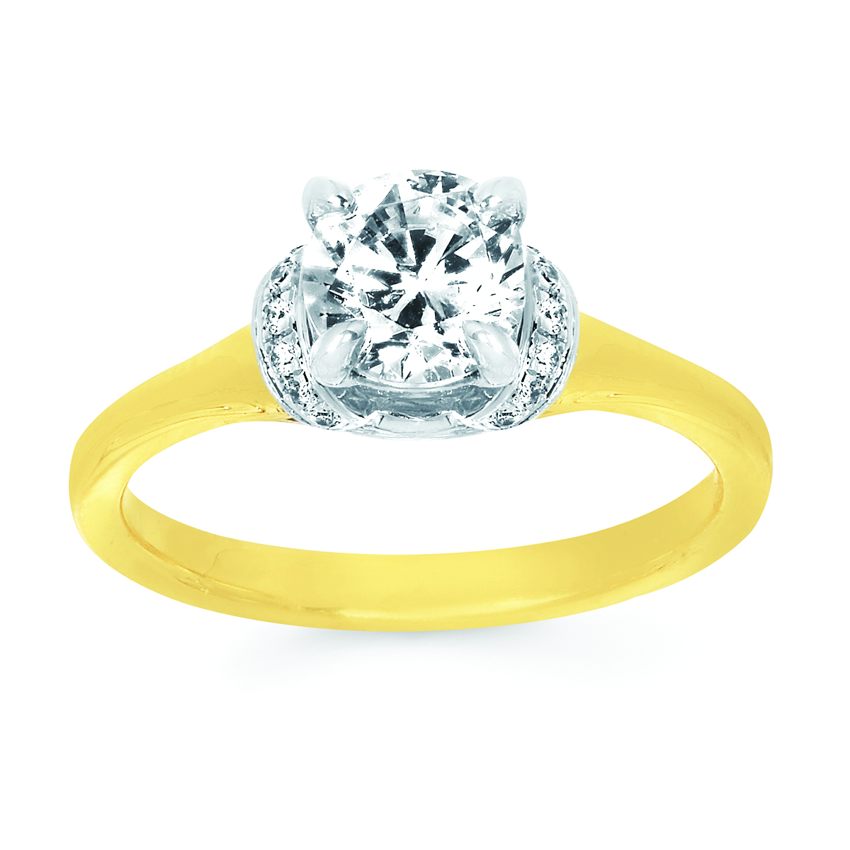 Engagement Ring Classic Bridal: 0.08 Ctw. Diamond Semi Mount shown with 1 1/2 Ct. RoundCenter Diamond in 14K Gold